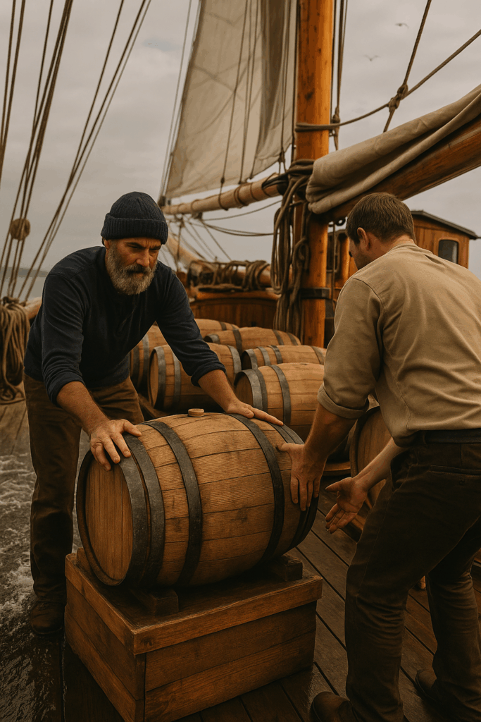 Historical records show that British naval rum and Caribbean casks were markedly changed by months aboard wooden ships. Even early American whiskeys — sent from Kentucky down the Mississippi and out to Europe — bore the unmistakable signatures of time, travel, and tide. These weren’t just transport methods — they were aging processes in their own right.